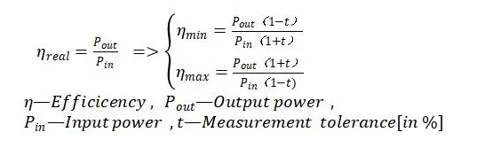 根據(jù)上述表達(dá)式,測量公差顯著影響以這種方式確定的效率。盡管 0.5% 的綜合測量誤差已經(jīng)是相對不錯的水平(實(shí)際上確實(shí)如此),但它對計(jì)算效率產(chǎn)生了巨大影響。下面我們展示一個示例加以說明。