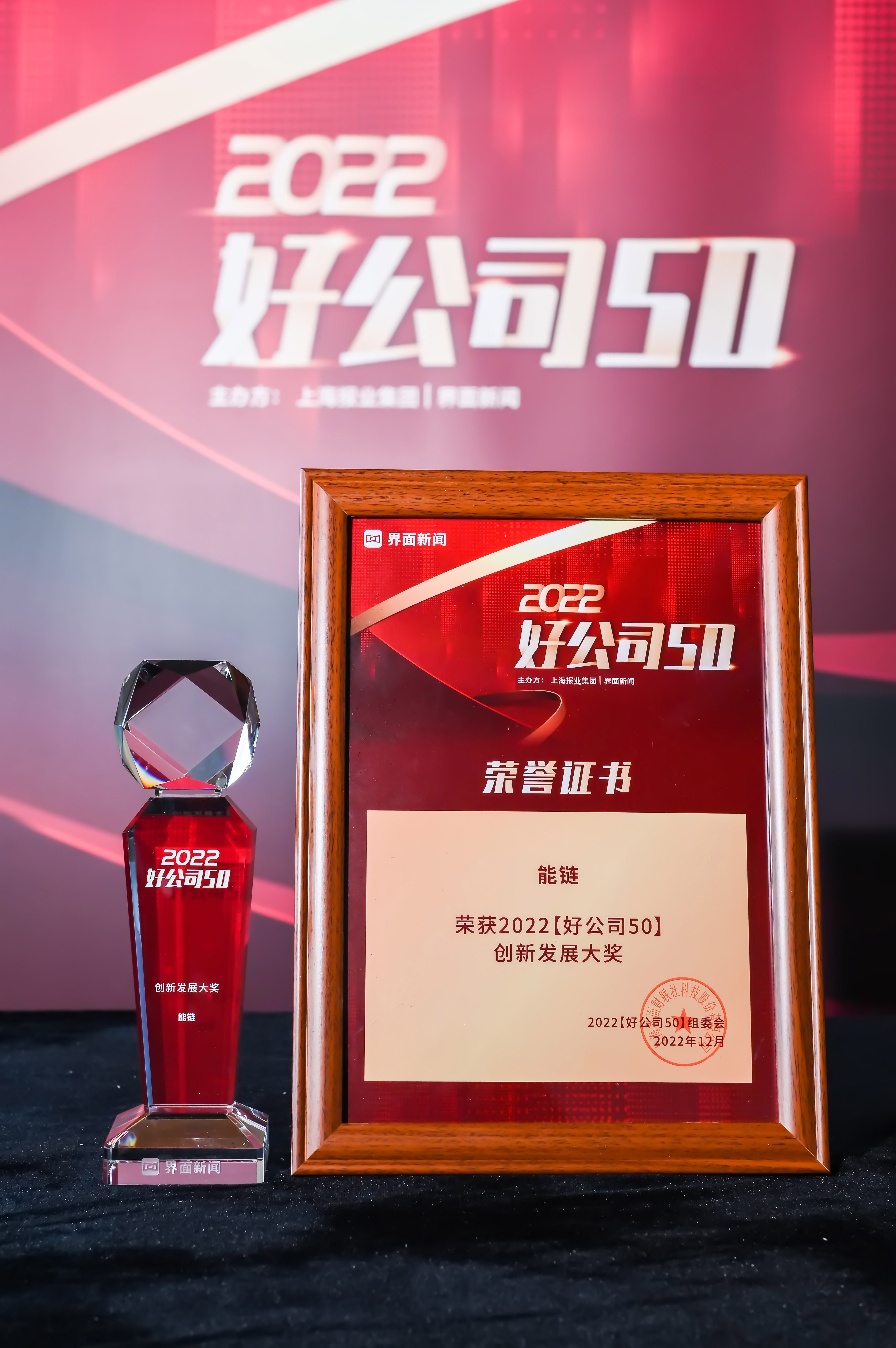 12月20日,由上海報業(yè)集團與界面新聞主辦的第五屆界面財經(jīng)年會在上海舉辦,大會期間公布了2022“好公司50”年度評選結果。能源數(shù)字化企業(yè)能鏈憑借在推動能源行業(yè)數(shù)字化升級、加強新能源基礎設施互聯(lián)互通等方面的創(chuàng)新實踐,榮獲創(chuàng)新發(fā)展大獎。