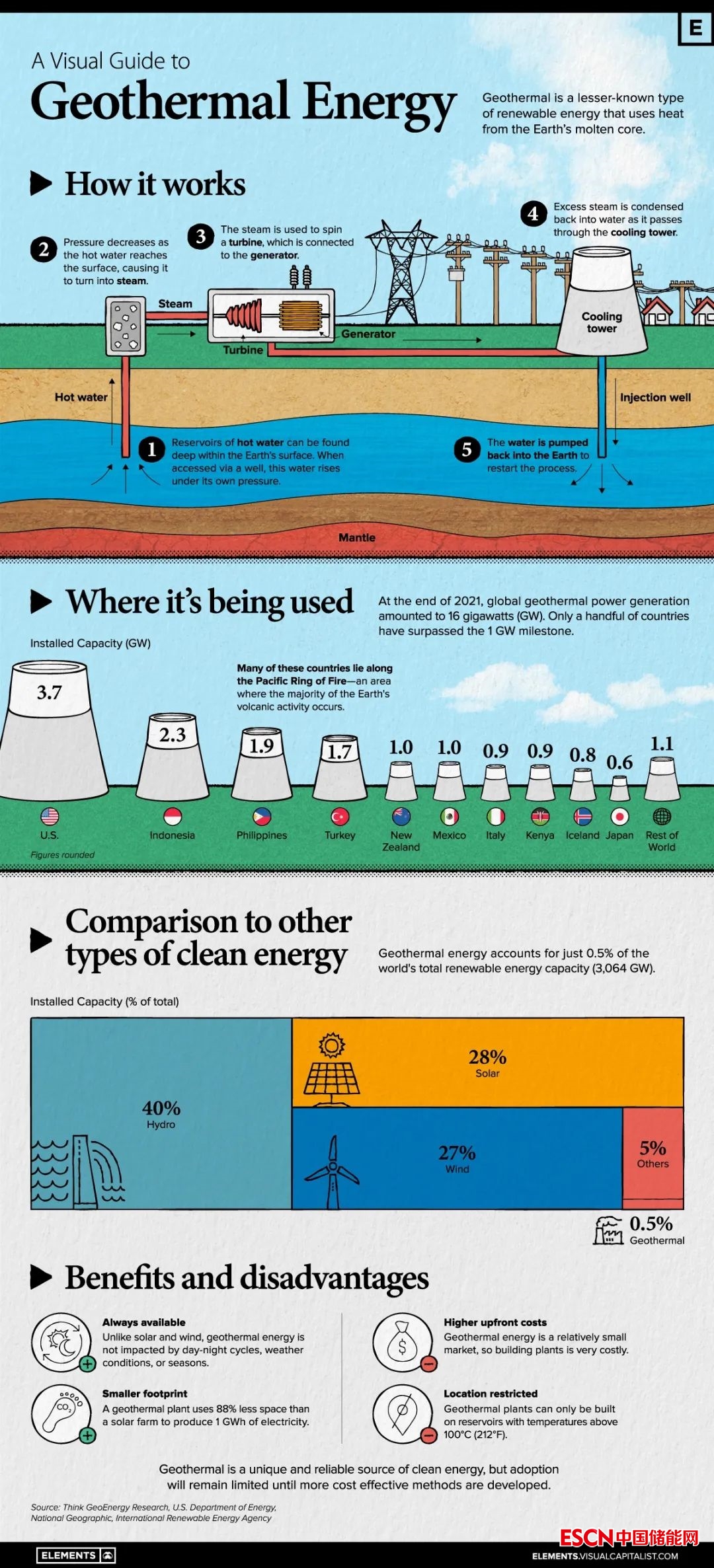 地?zé)崾且环N鮮為人知的可再生能源,它利用地球熔融核心的熱量發(fā)電。雖然這一獨(dú)特的特性使其比太陽(yáng)能和風(fēng)能具有關(guān)鍵優(yōu)勢(shì),但它也受到高昂的成本和地理限制。因此,很少有國(guó)家能夠大規(guī)模生產(chǎn)地?zé)崮堋irtual Capitalist網(wǎng)站發(fā)表信息圖中,介紹地?zé)崮艿膽?yīng)用。