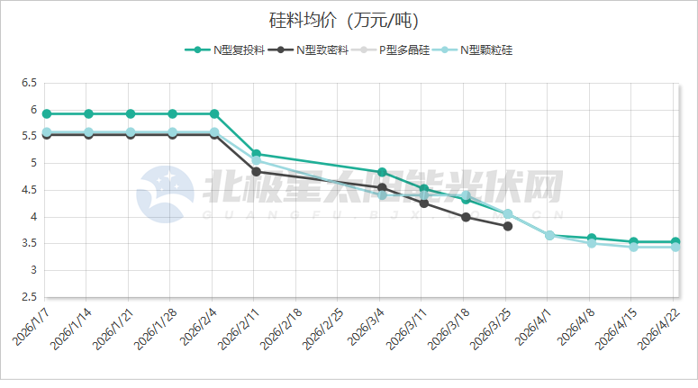 繼八連跌后,硅料價格終于止跌企穩(wěn)。據(jù)安泰科統(tǒng)計,本周多晶硅n型復投料成交價格區(qū)間為3.5-3.6萬元/噸,成交均價為3.53萬元/噸,環(huán)比持平;n型顆粒硅成交價格區(qū)間為3.4-3.6萬元/噸,成交均價為3.43萬元/噸,環(huán)比持平。