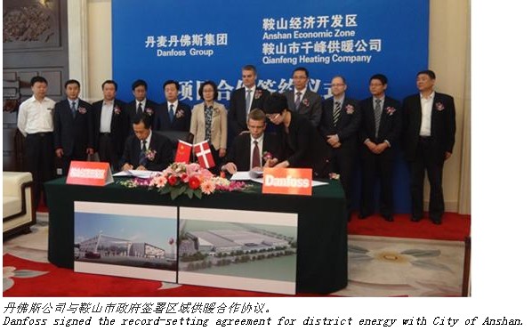 經(jīng)過一年籌劃,丹佛斯與其在鞍山的長期合作伙伴日前簽訂了一項具有里程碑意義的合作協(xié)議。根據(jù)協(xié)議,到2015年,丹佛斯將為鞍山市提供價值數(shù)億元人民幣的區(qū)域供熱解決方案。這是丹佛斯迄今為止在中國簽署的最大的區(qū)域能源項目商業(yè)協(xié)議。該項目的準備和實施獲得了丹佛斯在中國的戰(zhàn)略合作伙伴COWI公司的大力支持。