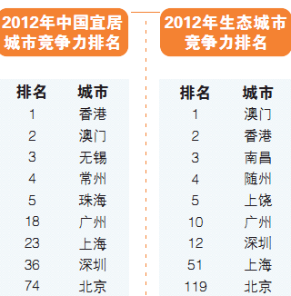 在新型城鎮化被定調為人的城鎮化之后,以人為本的城市建設也被提到新的高度。昨日,中國社科院財經戰略研究院發布的《中國城市競爭力報告2013:建設可持續競爭力理想城市》中,2012年宜居城市競爭力排名中,一向各方面表現搶眼的北上廣深集體缺席榜單前十,與其在經濟競爭力中的表現形成強烈反差。