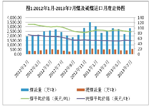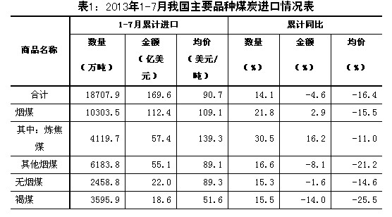 據(jù)海關(guān)信息網(wǎng)統(tǒng)計,今年1-7月,我國進口煤1.9億噸,增加14.1%;價值169.6億美元,下降4.6%;進口平均價格為每噸90.7美元,下跌16.4%。