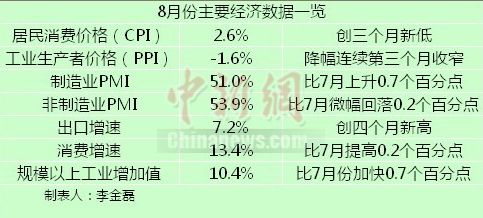 8月份多項(xiàng)經(jīng)濟(jì)數(shù)據(jù)表現(xiàn)良好