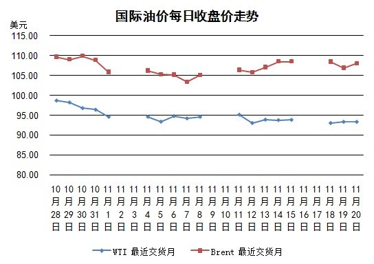 美國能源信息署發布周報,截至11月15日美原油庫存比前一周增加40萬桶,低于路透社預計的增加90萬桶;汽油庫存減少30萬桶,同市場預期一致;餾分油減少480萬桶,減幅大大高于路透社預計的減少60萬桶。這一消息支持油價上行。