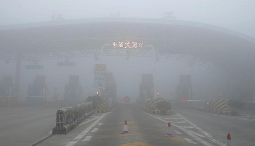 12月4日,滬陜高速揚州西收費站入口關閉。當日,江蘇揚州遭遇嚴重霧霾天氣,揚州境內高速公路全線實行臨時封閉。新華社發(崔根元攝)