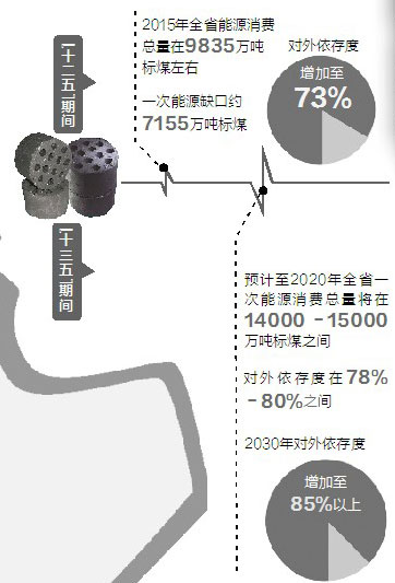 至2020年我省還需新增煤電1000萬千瓦,屆時煤電將達到3200萬千瓦,仍然是電源結構的主導。我省電源裝機中,全省煤電占比達到75%,本地煤電機組發電量占全省用電量的76%。