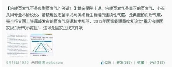 針對(duì)6月18日有媒體報(bào)道稱中石化涪陵頁(yè)巖氣項(xiàng)目以頁(yè)巖氣之名獲取巨額補(bǔ)貼的質(zhì)疑,中石化在晚間連發(fā)四條微博回應(yīng)有關(guān)報(bào)道,稱說(shuō)“涪陵頁(yè)巖氣不是典型頁(yè)巖氣(是)笑話!”,并表示其完全符合國(guó)土資源部發(fā)布的頁(yè)巖氣資源技術(shù)規(guī)范,同時(shí),中石化申請(qǐng)國(guó)家財(cái)政補(bǔ)貼也是正常之舉,符合規(guī)定。