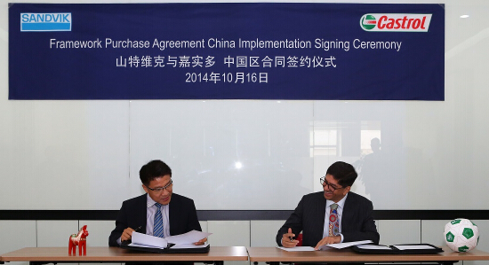 2014年11月17日,上海—嘉實(shí)多工業(yè)大中華區(qū)銷售總監(jiān)Uday Kumar與山特維克集團(tuán)執(zhí)行副總裁、山特維克大中華區(qū)總裁張志強(qiáng)共同簽署了中國市場的采購框架協(xié)議。今年八月份,山特維克選定嘉實(shí)多為其全球潤滑油優(yōu)先供應(yīng)商。