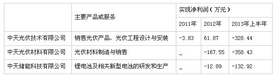 可是,記者查閱中天科技歷年的業績公告(詳見表一)發現,公司在新能源上的經營情況并不樂觀。其2012年的年報顯示,當年,除中天光伏技術有限公司實現凈利61.87萬元,其余兩個涉新能源業務的子公司均虧損。2013年上半年,新能源業務全面陷入虧損,且虧損幅度較上年大幅放大。