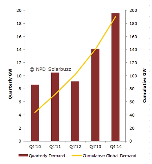 SB_Q4 Solar PV Demand and Year-End Cumulative Installed PV_141006(Source:Solarbuzz)
