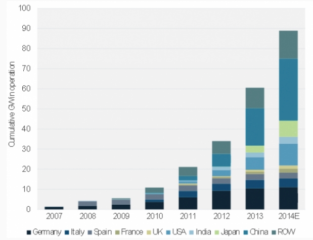 該新的報告強調,全球光伏運營和維護市場應該在2014年超過88GW,并且毫無意外由中國主導,中國去年安裝超過10GW,預計2014年至少安裝13GW。