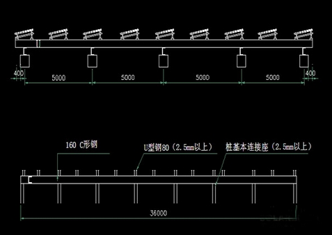 基礎結構是200*200*5和80*80*3的方鋼構成,由45*60*3的U型鋼做檀條,用整條中壓塊作為接縫處的連接處理,邊上仍用單個80長的邊壓塊,讓光伏板作為建筑物體,發揮遮陽擋雨功能的同時,也讓它發電,從而使建筑物體發揮更好的功能。