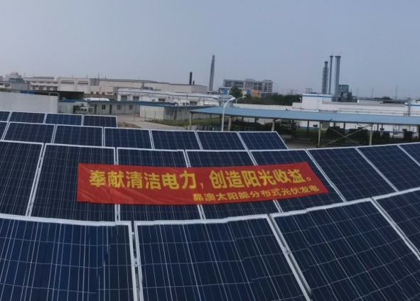 該電站項目位于張家港市經濟開發區化工園區,由160塊JAP6-260w組件(發電部分)、交直流一體柜、并網逆變器(能量轉換部分),氣象站、監控系統組成。系統采用低壓并網,輸出380V三相交流電,可直接用于工廠的直接運行。預計年發電量5萬千瓦/時,約節約標準煤16噸、碳粉塵排放13.60噸、二氧化碳排放49.85噸。