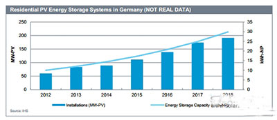 IHS預(yù)計(jì),盡管慷慨的光伏補(bǔ)貼費(fèi)率令自耗型部門吸引力不大,但2018年日本有望以200兆瓦之多的住宅光伏儲(chǔ)能規(guī)模位列全球第一。為了緩解國家電力短缺現(xiàn)象,日本已推出補(bǔ)貼機(jī)制推動(dòng)鋰離子電池運(yùn)用于住宅與商業(yè)建筑物之中。由于電力頻繁中斷及高峰與非高峰時(shí)期電價(jià)存有顯著差異,人們對(duì)配有儲(chǔ)能系統(tǒng)的光伏設(shè)施興趣漸濃。雖然配有儲(chǔ)能系統(tǒng)的光伏設(shè)施能夠提供備用電力,但這個(gè)因素在推動(dòng)全球市場(chǎng)發(fā)展的道路上只發(fā)揮很小的作用。