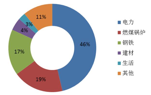2012年中國煤炭消費中的部門分布