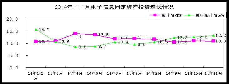 1-11月,電子信息產業(yè)500萬元以上項目完成固定資產投資額10904億元,同比增長10.8%,增速比1-10月下降0.2個百分點,比去年同期低2.4個百分點,比同期工業(yè)投資低2個百分點。1-11月,電子信息產業(yè)新增固定資產5601.7億元,同比增長8.2%,增速低于去年同期5.6個百分點,比1-10月下滑2.1個百分點。