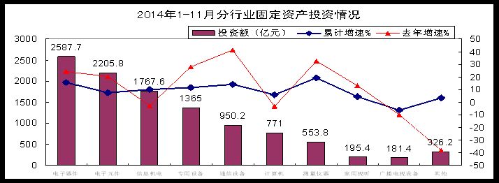 三、電子元器件、通信設備等行業(yè)投資回落,家用視聽、信息材料等領域轉為正增長