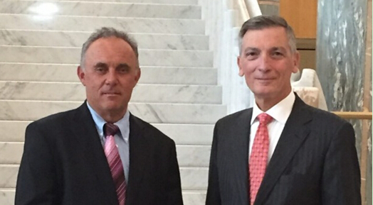 澳大利亞液態(tài)金屬蓄電池研究公司首席執(zhí)行官戈登•海恩茲(GordonHinds)和美國(guó)的聯(lián)合發(fā)明者唐納德•薩杜威(GordonHinds)教授