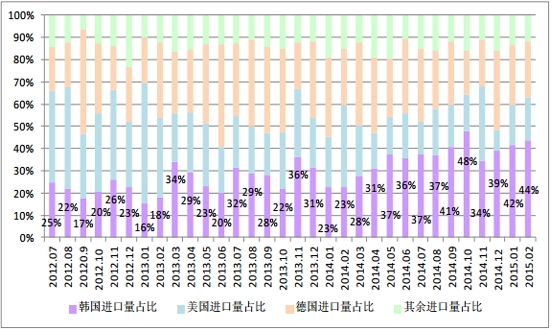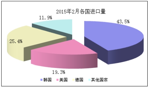 圖4 2015年2月各國進(jìn)口量占比數(shù)據(jù)來源:海關(guān)