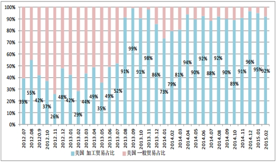 圖3 自美國按加工貿(mào)易進(jìn)口占比