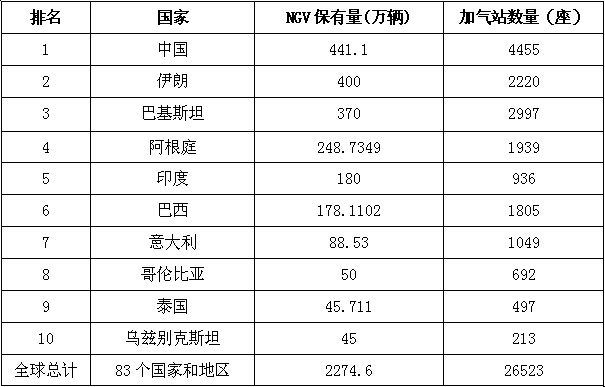 一、我國推廣天然氣汽車業績和世界排名情況