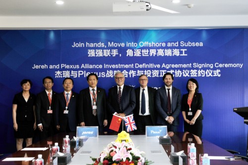 北京時間2015年7月1日,杰瑞集團與英國Plexus公司簽署了戰略合作與投資正式協議,成為中國第一家海洋水下井口設備供應商。本次合作將Plexus的技術優勢和產品業績與杰瑞優秀的制造能力和市場開拓能力相結合,為雙方共同開拓海洋油氣開發水下設備奠定堅實基礎。