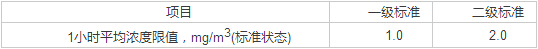 附錄:1、本標準規定的環境空氣中非甲烷總烴限值為1h平均濃度限值。