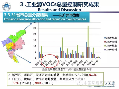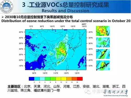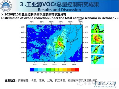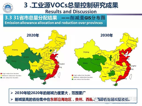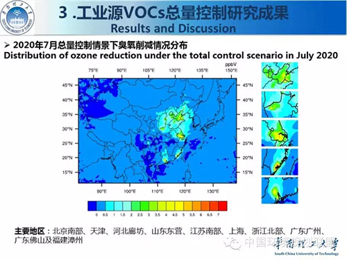 在空氣質(zhì)量影響評估方面,以7月、10月為代表月份,2020年7月,我國在總量控制條件下,典型城市的臭氧濃度降低范圍為2.75-8.50μg/m³,同年10月為2.61-30.07μg/m³,2030年7月為19.30-40.87μg/m³,同年10月為13.52-84.63μg/m³,結(jié)果證明,VOCs(揮發(fā)性有機(jī)物)的減排能為臭氧濃度的降低帶來較大幫助。