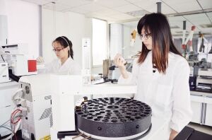 實驗室工作人員對污水樣品進(jìn)行檢測
