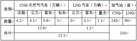 (2)全國天然氣汽車保有量及加氣站數量(截止2015年年底)