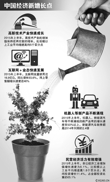 分析看待中國經濟形勢,既要縱向比較,也要橫向對比;既要看增速變化,又要看結構變動和動力轉換;既要觀察運行狀況,更要把握發展走勢。在國家信息中心經濟預測部宏觀經濟研究室主任牛犁看來,下半年,股市成交大幅縮水使得金融業對經濟增長的貢獻將顯著減弱。但隨著連續降息降準、擴大財政支出和清費降稅,以及實施重大投資項目工程包和消費工程等一系列穩增長政策逐步見效,改革紅利不斷釋放,加之基數較低等因素,中國經濟有望保持小幅回穩態勢,可以實現全年GDP增長7%左右的預期目標。