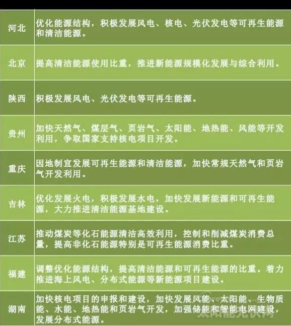 按著國家層面的定調,地方能源發展的重點集中在了發展清潔能源、加快能源通道建設、防治大氣污染、加快配電網建設四個方面。