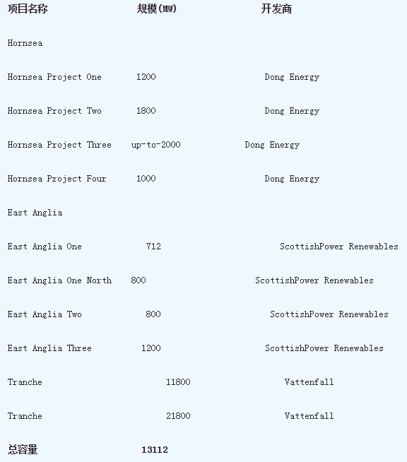 Hornsea項目和EastAnglia海上風電場一覽