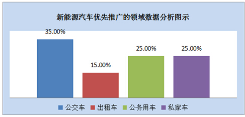 對于電動汽車適合推廣的領域,調查數據顯示,認為電動汽車首先應在公交車領域推廣的占比為35%,出租車領域為15%,公務車領域的25%,私家車領域為25%。