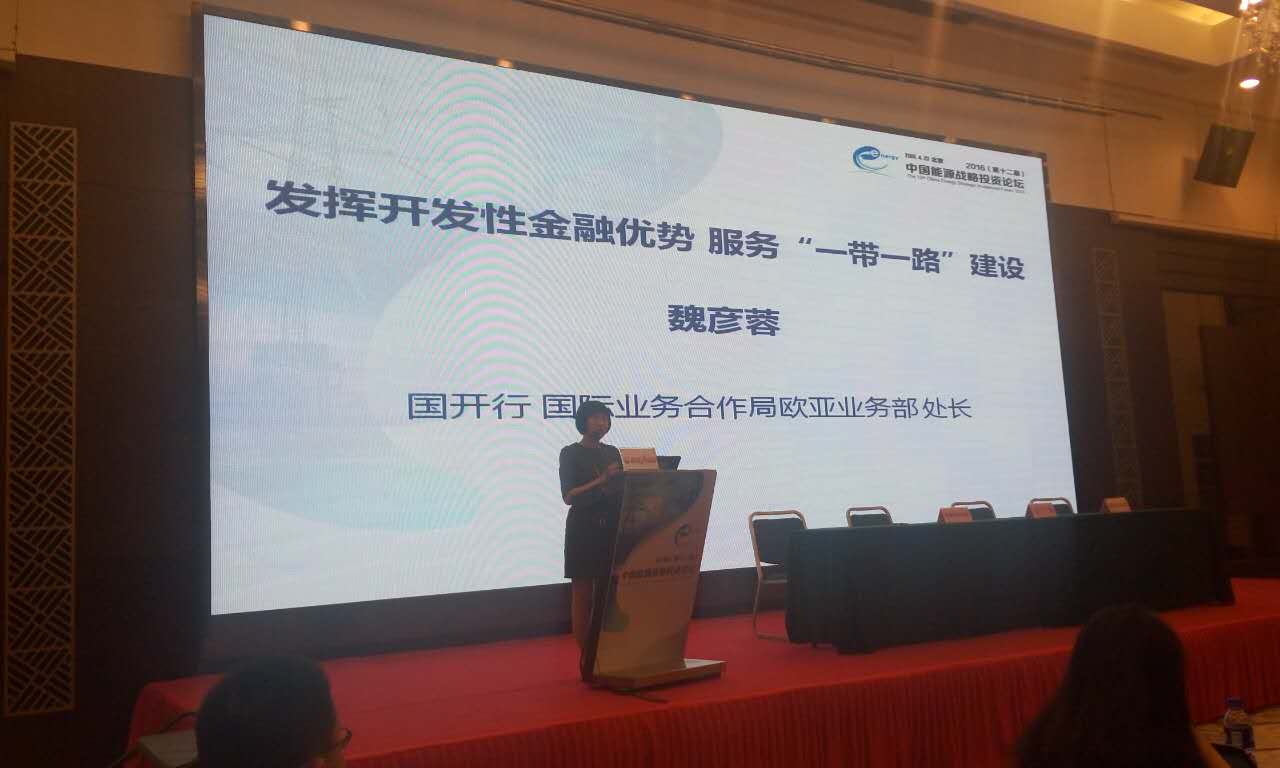 國開行國際業務合作局歐亞業務部處長魏彥蓉做主題演講:發揮開發性金融優勢 服務“一帶一路”建設。