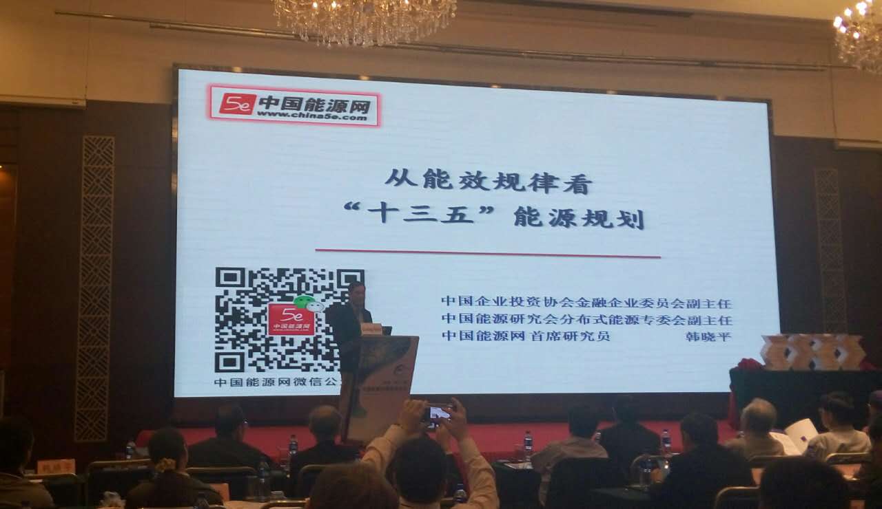 中國能源網首席信息官韓曉平做主題演講,題目是:“十三五”節能優先。