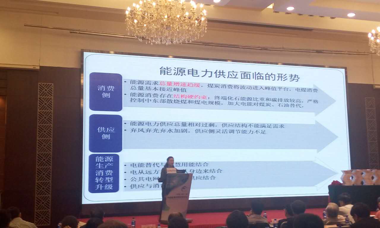 中國電力企業聯合會發展規劃研究部主任薛靜做主題演講,題目是:能源消費變革促進能源供應側改革。