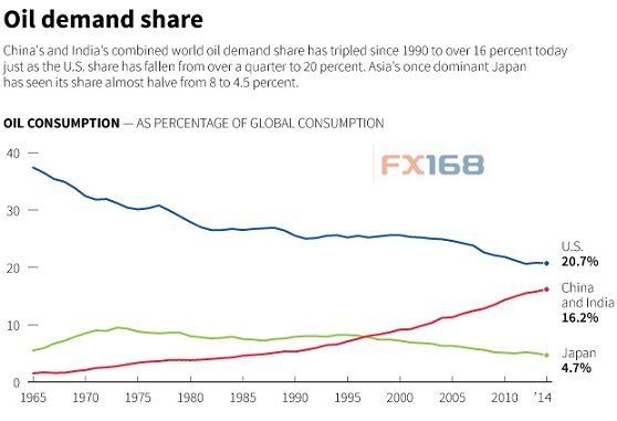 (石油需求分布 來(lái)源:英國(guó)石油公司BP、FX168財(cái)經(jīng)網(wǎng))
