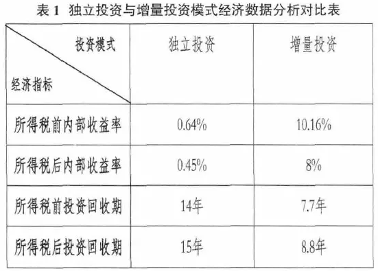 由上表可見,該項目如果采取BOOT投資模式建設,則采用增量投資方式經濟性方面更有優勢。