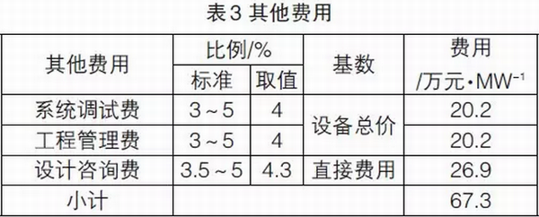 另外考慮降噪和接入費(fèi)用100萬(wàn)元/MW(屬于其他費(fèi)用),則發(fā)電工程單位裝機(jī)其他費(fèi)用為167.3萬(wàn)元/MW。