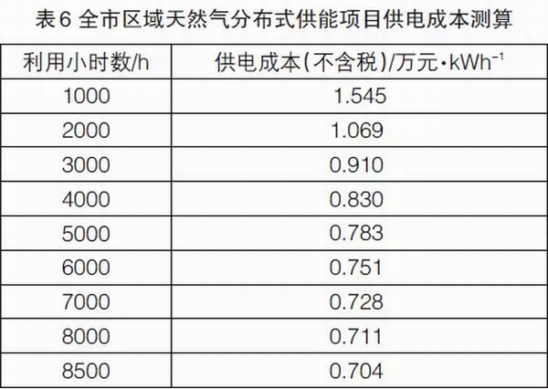 年利用小時(shí)數(shù)分別選取2000、3000、4000、5000、6000小時(shí)進(jìn)行測(cè)算,供電成本測(cè)算結(jié)果如表6所示。