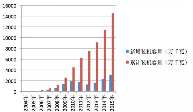 圖1 歷年中國(guó)風(fēng)電新增和累計(jì)裝機(jī)容量
