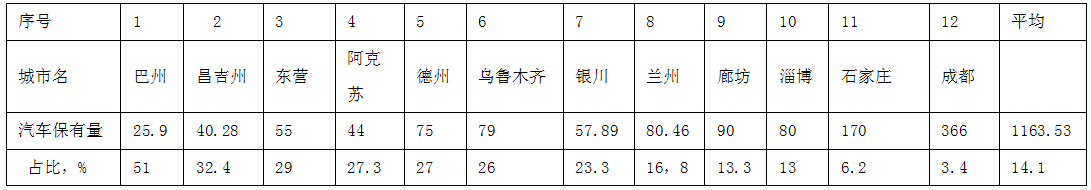 表二、12個城市CNG汽車與當?shù)仄嚤S辛康恼急扰判虮?br />