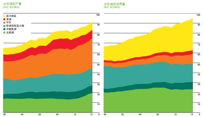 石油分區域產量和消費量變化趨勢