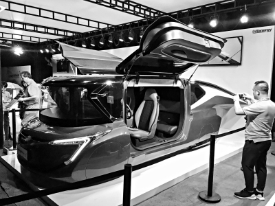 漢能最新展出的SolarL太陽能汽車。本報記者鄧偉攝