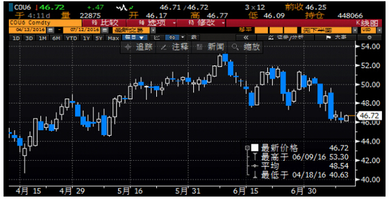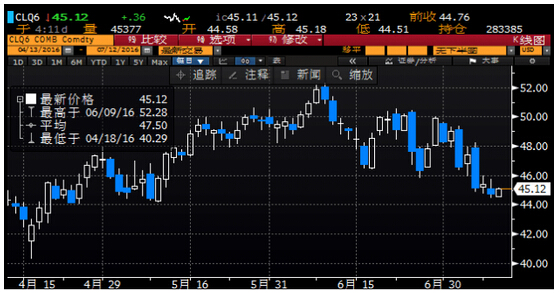 周二(7月12日)亞歐時段國際油價小幅反彈,脫離兩個月低位,美原油8月期貨目前交投于45.08美元/桶,收復了隔夜大部分跌幅,布倫特原油9月期貨目前交投于46.68美元/桶,因伊拉克原油暫停裝運,恐將使供給趨緊,不過投資者削減多頭押注也令油價漲勢受限。