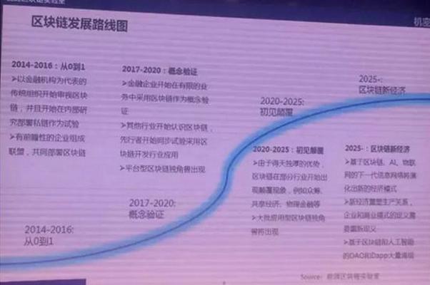 到2020年平臺(tái)出現(xiàn),應(yīng)用落地,很多應(yīng)用型,基于行業(yè)應(yīng)用的區(qū)塊鏈落地企業(yè)就會(huì)出現(xiàn),我們就拿能源領(lǐng)域來說,區(qū)塊鏈+分布式光伏,區(qū)塊鏈+電動(dòng)汽車管理等,部分的新經(jīng)濟(jì)行業(yè)可能出現(xiàn)區(qū)塊鏈顛覆現(xiàn)象,比如說眾籌,還有共享經(jīng)濟(jì)、物流金融,我們稱為是增量的一些行業(yè),可能會(huì)被區(qū)塊鏈所顛覆。2025年區(qū)塊鏈+AR,+物聯(lián)網(wǎng),將會(huì)形成合力,同時(shí)是以排山倒海的態(tài)勢(shì)沖擊所有行業(yè)。