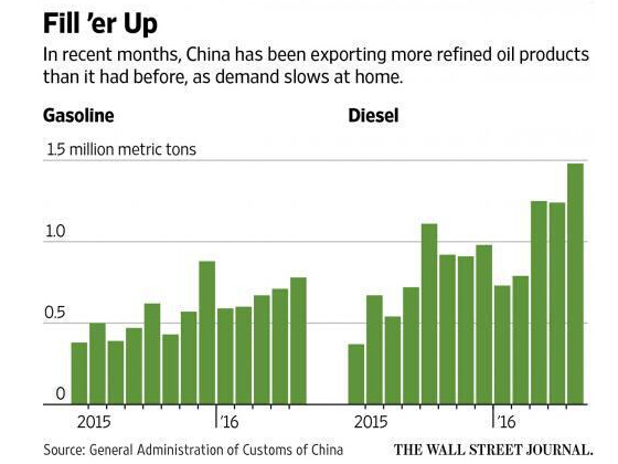 2015年,中國第一次允許“茶壺”煉油廠直接從國外進口原油,而不是從中國國有石油公司購買更昂貴的原油。此后,這些“茶壺”煉油廠產量大增,與國有石油企業的競爭加劇,導致后者他們不得不將更多的產品銷往國外。