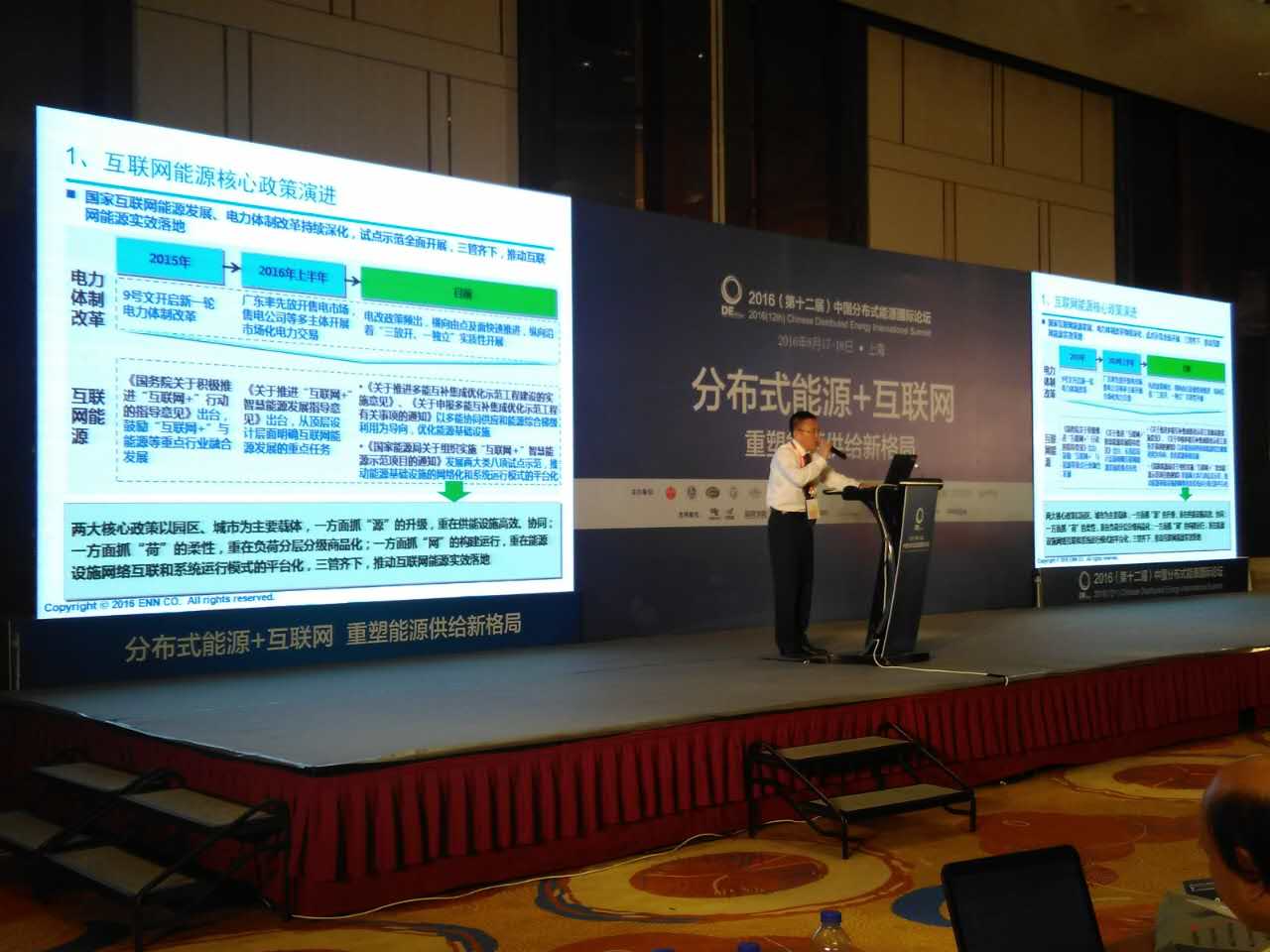 應該說我們從事這個行業,跟國家大的環境是密不可分的。尤其是從2015年以來,剛才王處專門提到了:2015年以來隨著電力體制改革的深化和互聯網整個產業的一種蓬勃發展,應該說給我們所從事的行業帶來了勃勃生機。從電力體制改革,大家非常熟悉;2015年實際上就是9號文開啟了新一輪電力體制改革,到今年上半年廣東率先放開了收電市場。我們新奧廣東售電公司也有幸進入了第一批13家的售電企業,售電公司多主體開展市場化的電力交易。目前電廠政策的推出,橫向由點及面快速的推進,縱向沿著三開放、一獨立實質性開展。互聯網從2015年指導意見出臺,再到今年整個頂層設計,進一步明確了互聯網發展的重要任務。到最近有兩個很重要的實施意見和相關的示范項目的通知,這里面包括:互聯網+示范項目推進等。從這兩大方面,應該說總體來看,兩大核心政策都是園區、城市為主要的載體。一方面,會抓“源”的升級,重在供能設施高效、協同;一方面抓“荷”的柔性,重在負荷分層分級商品化;一方面抓“網”的構建運行,重在能源設施網絡互聯和系統運行模式的平臺下,三管齊下,推動互聯網能源實效落地。